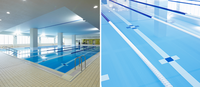 25m×7コースの大型プールでは、スイミングだけでなく、水中ウォーキング、アクアビクスなども楽しめます。