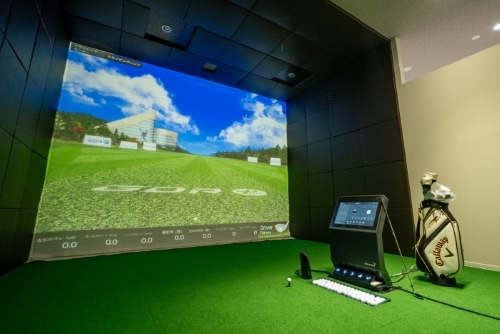 横幅約5m・高さ約3mの16:9大型スクリーンと、高性能ゴルフシミュレーター「GDR PLUS」と「T2 VISION」を導入し、圧倒的な没入感のもとでリアルなラウンド体験を実現します。