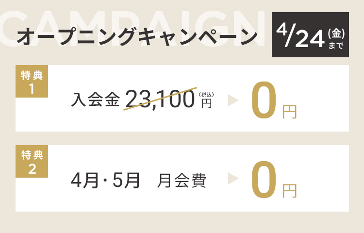 ※当特典の適用は入会月より4か月間の在籍が条件となります。