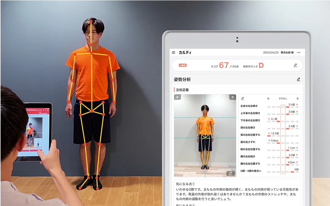 数枚の写真撮影で最先端のAIが姿勢を解析。