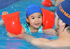 赤ちゃんは、生まれる前からママのお腹の中で泳いでいました。水の楽しさを親子で楽しみましょう。