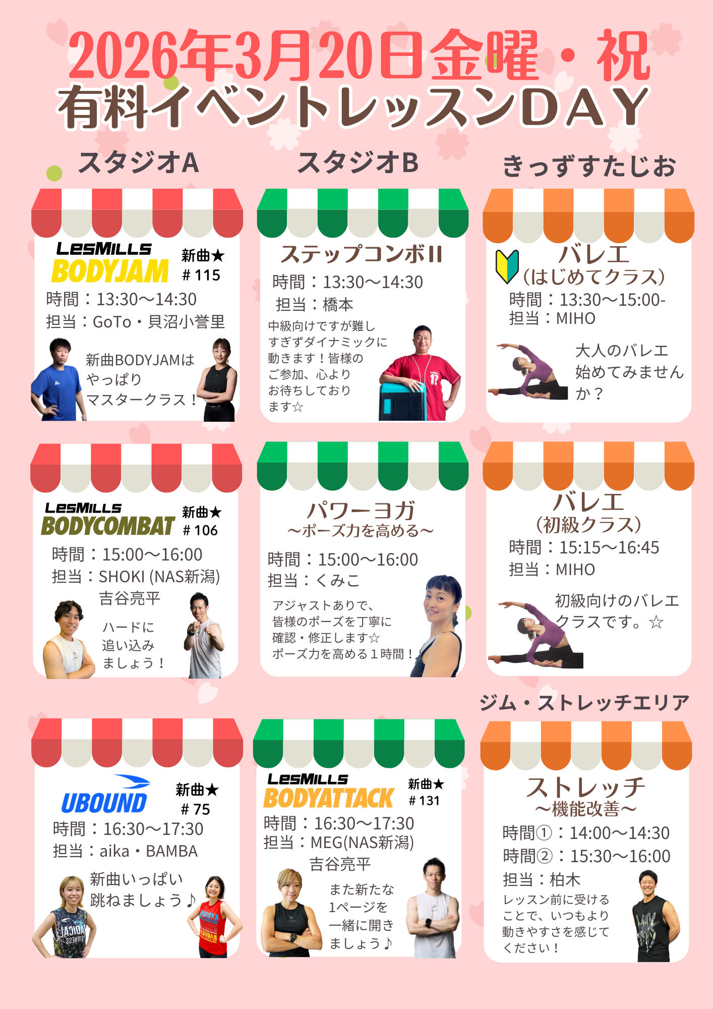 2026年3月20日(金・祝) 有料イベントレッスンDAYご案内
