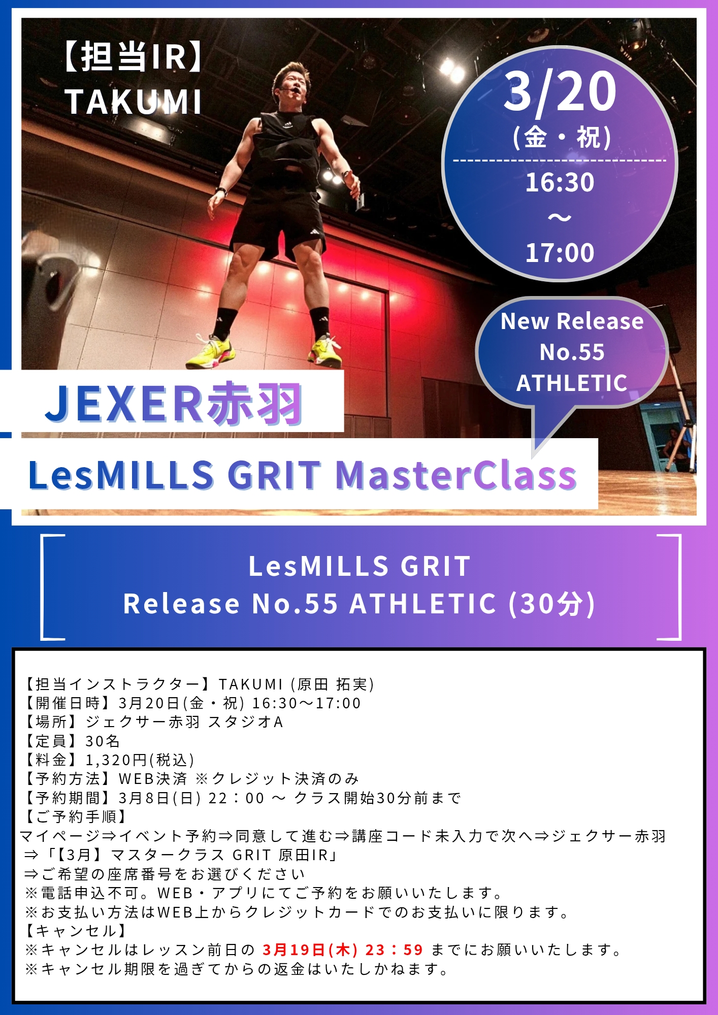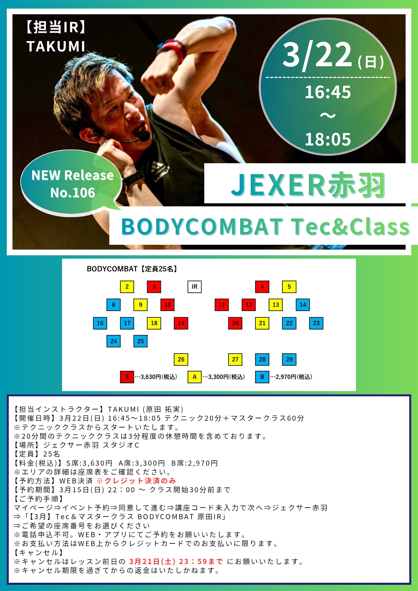 2026年3月22日(日)新曲発表会有料イベント BODYCOMBAT マスタークラス 原田拓実IR