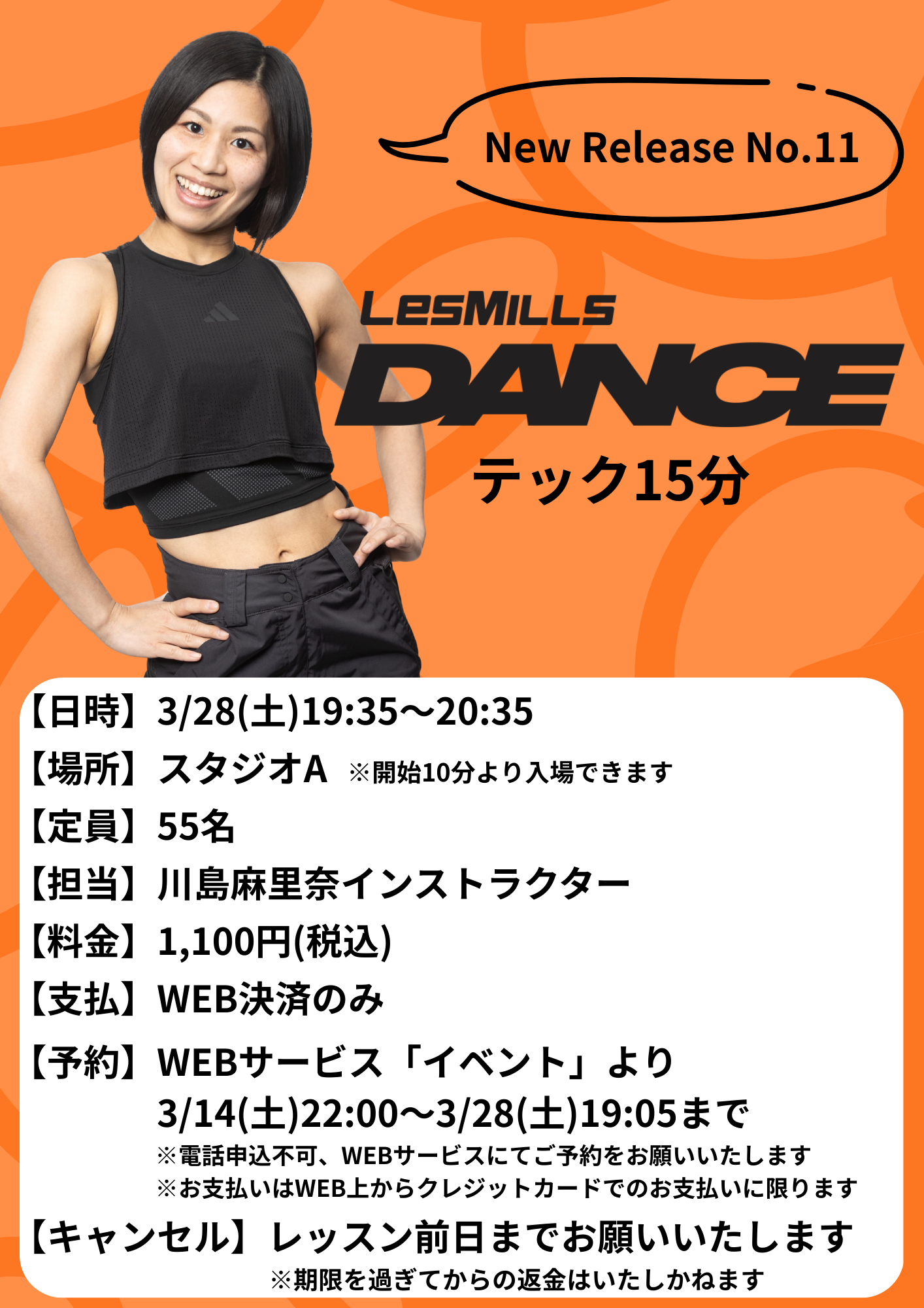 2026年3月28日(土)新曲発表会有料イベントLesmills DANCE マスタークラス川島IR